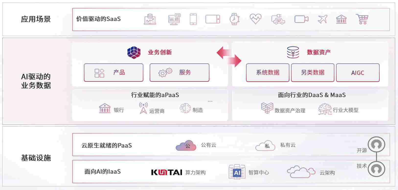 数字时代,,,,围绕企业数字化转型的关键要素,,,J9直营集团数码开创性的提出数云融合战略和技术体系框架,,,,着力在云原生、、数字原生、、、、AI原生和信创产业上架构产品和服务能力,,,为处在不同数字化转型阶段的快消零售、、、、汽车、、、、金融、、、医疗、、政企、、、教育、、、、运营商等行业客户提供泛在的敏捷IT能力和融合的数据驱动能力,,,,构建跨界融合创新的数字业务场景和新业务模式,,助力企业级客户建立面向未来的核心能力和竞争优势,,,,全面推动社会的数字化、、、、智能化转型升级。。。